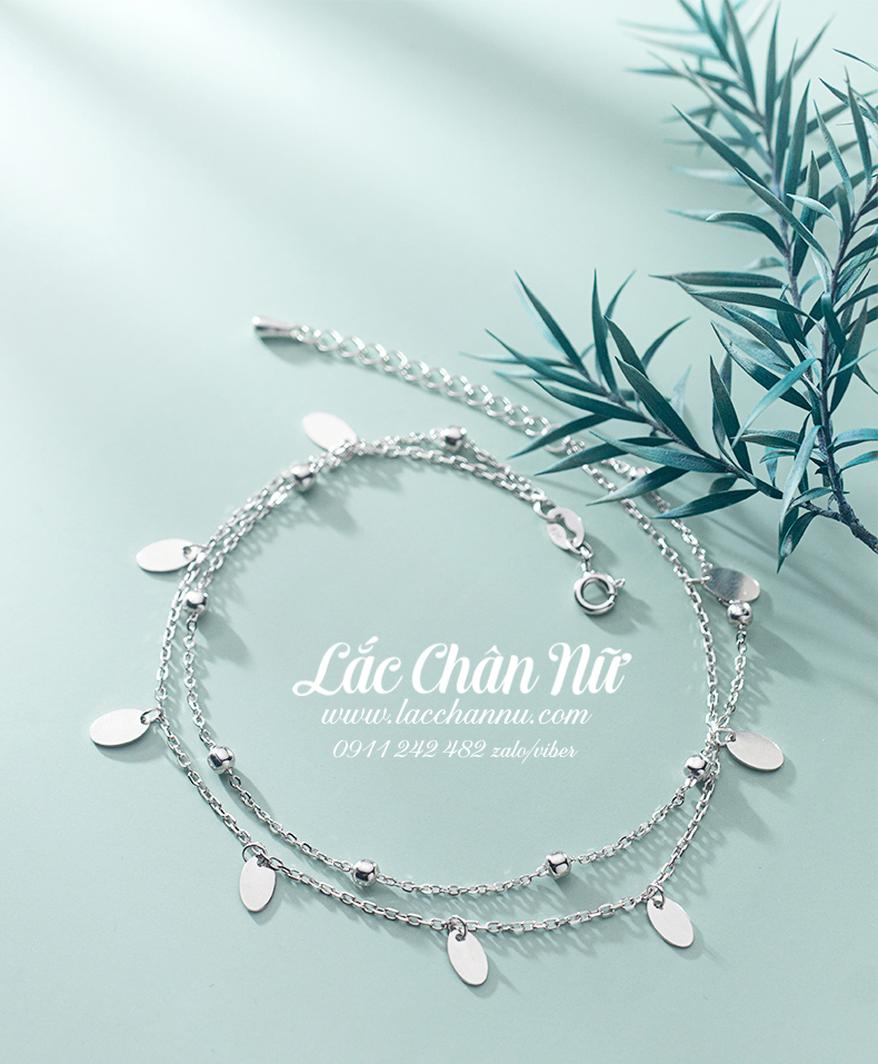 - Tên: Lắc chân bạc dây đôi hình chiếc lá cá tính LCBN237