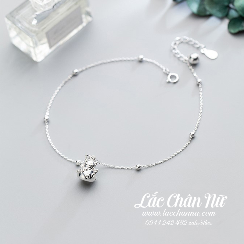 Lắc chân bạc nữ mèo may mắn LCBN151