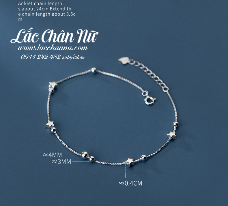 - Tên: Lắc chân bạc nữ ngôi sao đẹp LCBN284